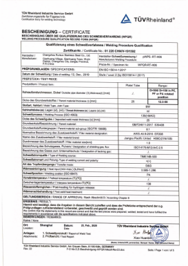 Multiple welding processes including MIG, TIG, and submerged arc welding, certified by ISO9606.